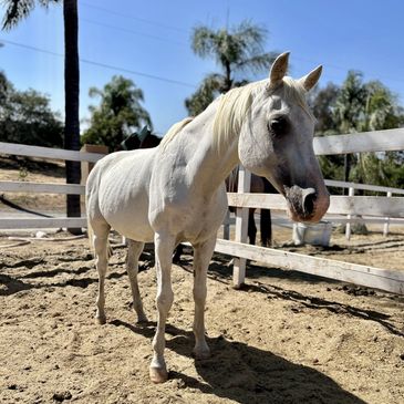True to his name, Casper embodies the gentle, approachable spirit of “Casper the Friendly Ghost.” His kind eyes and sweet nature make him an instant favorite among students, especially those who may feel nervous around bigger horses. His smaller size allows younger riders to feel confident and secure, while his Arabian background gives him the intelligence and sensitivity to connect deeply with each person he works with.