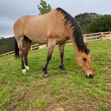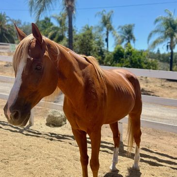 With his shorter stride and naturally calm demeanor, Pax found a better fit when he was given a second chance at a new career at the same Ramona barn that our gentle giant Finn came from.